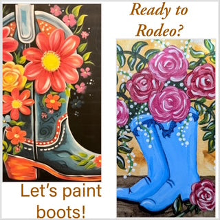 Painters choice of two different boots to show off the western spirit.